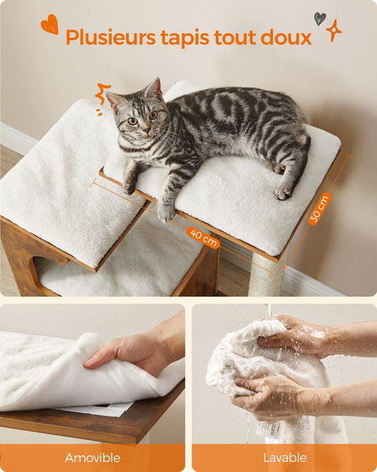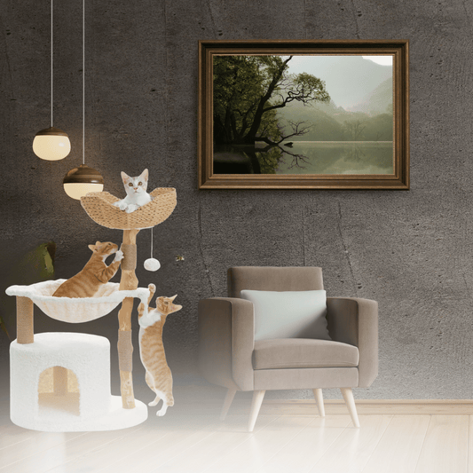 Arbre à Chat en Bois avec Panier Tissé et Hamac