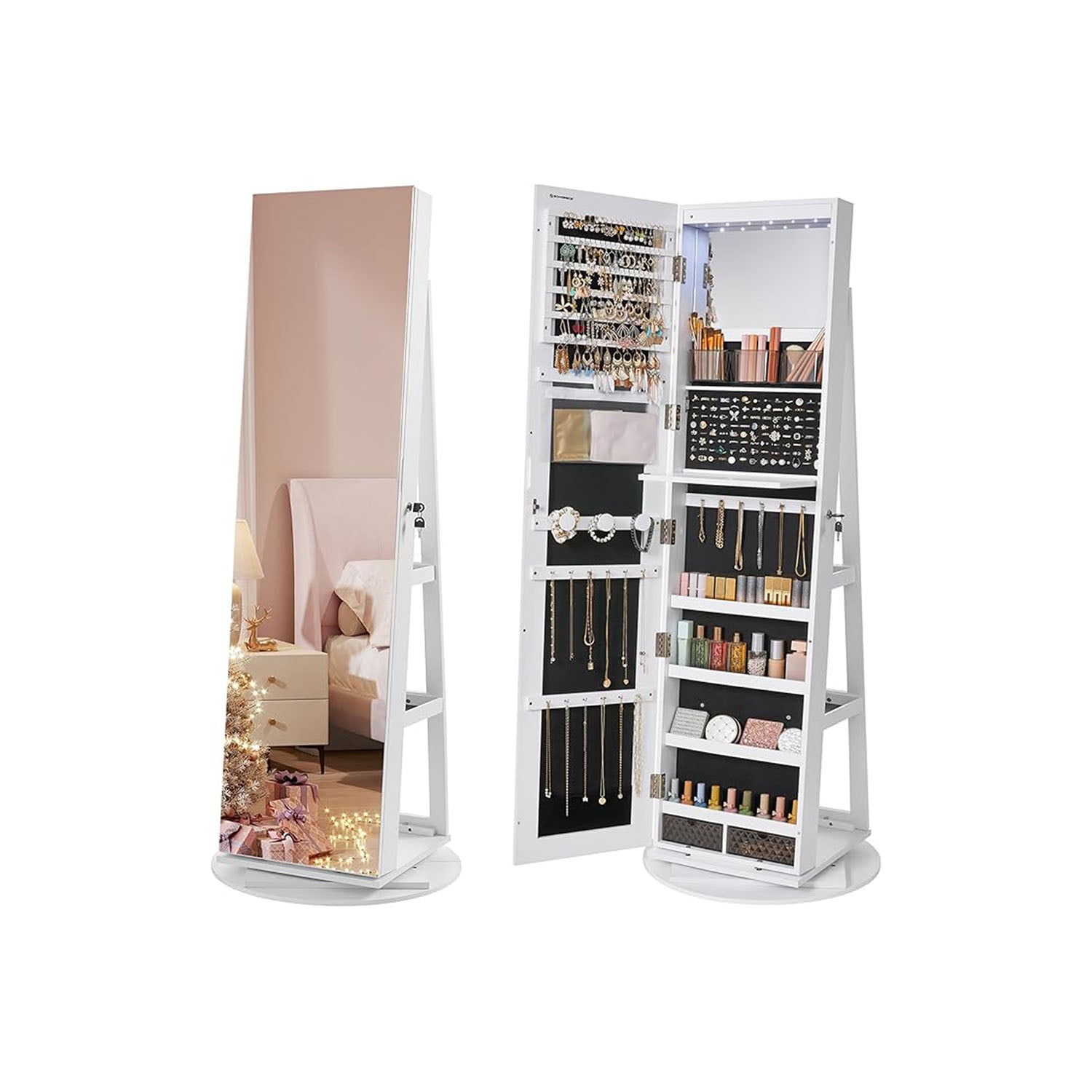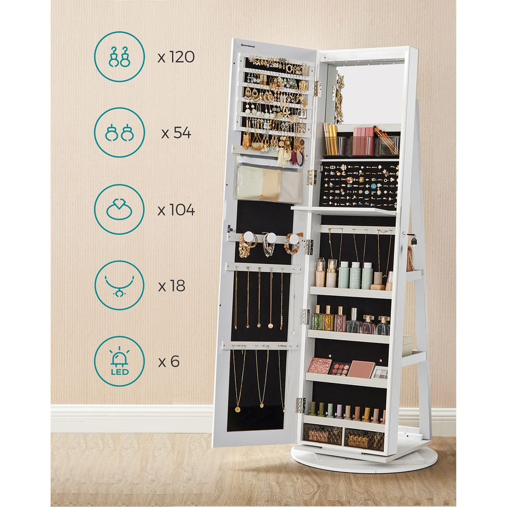 Armoire à bijoux avec 6 LED sur pieds