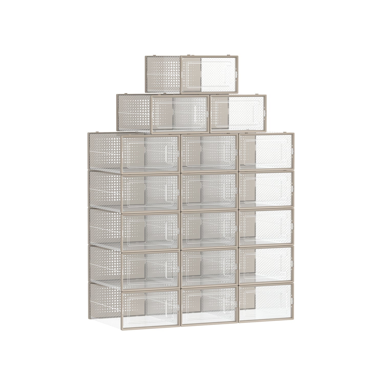 Les boîtes à chaussures pliables sont la solution parfaite pour organiser vos chaussures avec style et efficacité. Elles mesurent 33,3 x 23 x 14 cm et sont idéales pour ranger des chaussures jusqu’à la taille 42. Vendu par lot de 18, ces boîtes transparentes et empilables optimisent votre espace tout en simplifiant l’accès aux chaussures grâce à leur porte frontale astucieuse. Fabriquées en plastique durable, elles protègent vos chaussures tout en laissant respirer grâce à leurs trous d’aération. Que vous viviez dans un espace réduit ou cherchiez à rafraîchir votre rangement, ces boîtes sont conçues pour vous simplifier la vie.