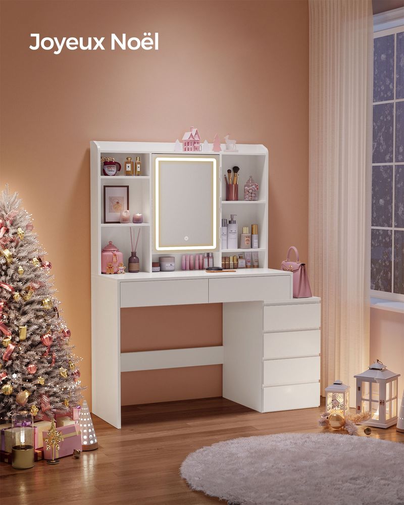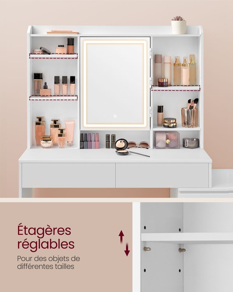 Coiffeuse avec grand miroir LED à luminosité réglable